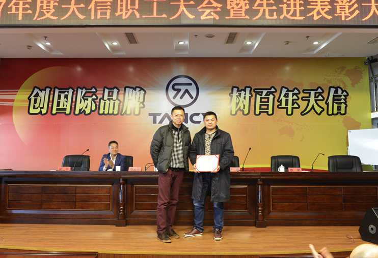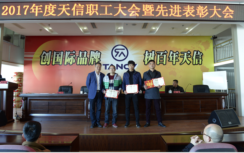 2月5日,2017年度天信職工大會暨先進表彰大會在公司二樓大型會議室召開,會議由副總裁張華主持,公司總裁范叔沙,副總裁葉朋、仇梁以及全體員工共360多人參加。本次會議既是一次總結表彰會,也是一個繼往開來的動員會。